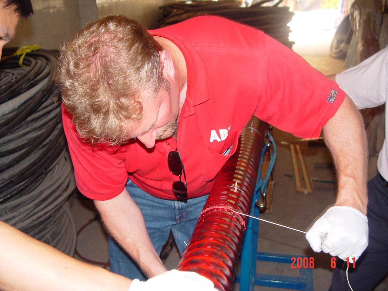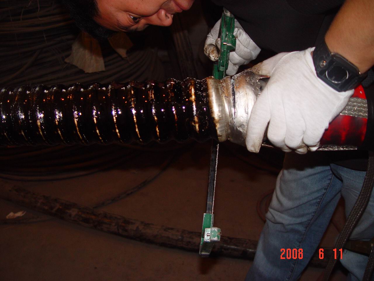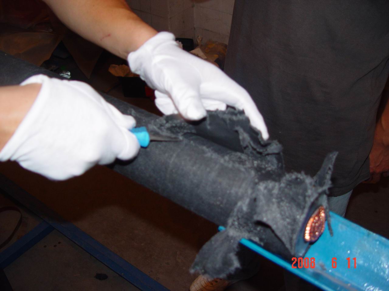 探討問(wèn)題畫(huà)圖講解培訓(xùn)師示范如何用剝離進(jìn)行打磨割開(kāi)保護(hù)電纜的保護(hù)層用砂紙打磨半導(dǎo)電層用割離繩割電纜外層使用專業(yè)工具剝半導(dǎo)電層剝離電纜外層鍍錫 固定銅編帶割開(kāi)保護(hù)電纜的保護(hù)層